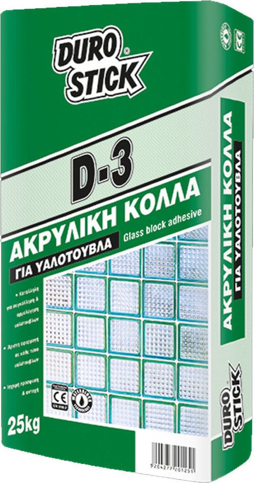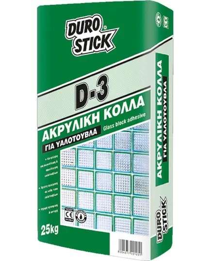 - Η κόλλα DUROSTICK D-3 εφαρμόζεται εύκολα σε κάθε τύπο υαλότουβλων, τόσο σε εσωτερικούς όσο και σε εξωτερικούς χώρους.