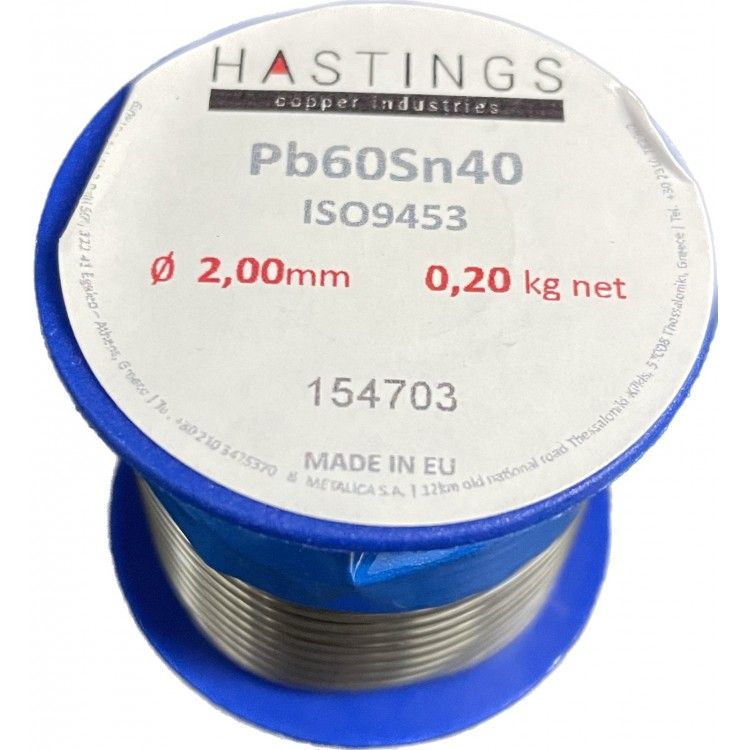 Κόλληση μαλακή κασσιτέρου HASTINGR Pb60Sn40 2.00mm 200gr