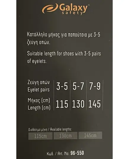 Κορδόνια παπουτσιών μαύρα GALAXY LACES 130cm 96-550