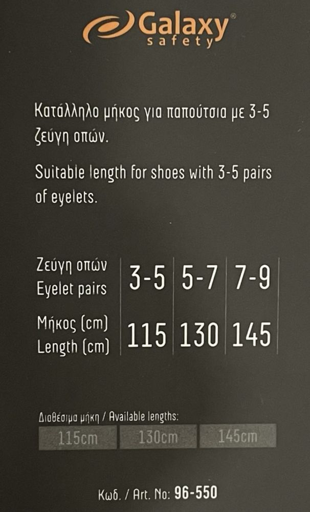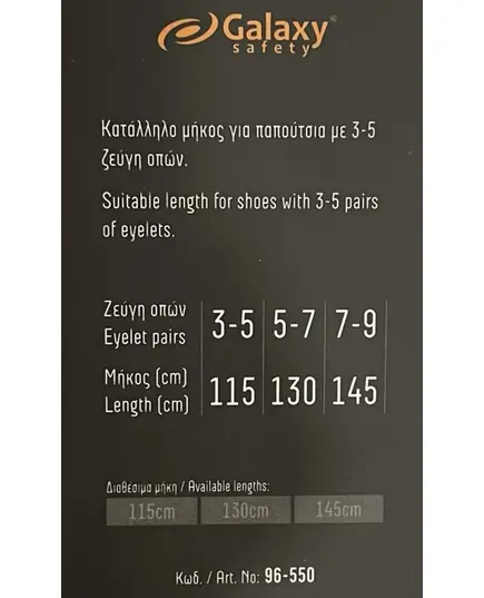 Κορδόνια παπουτσιών μαύρα GALAXY LACES 115cm 96-550