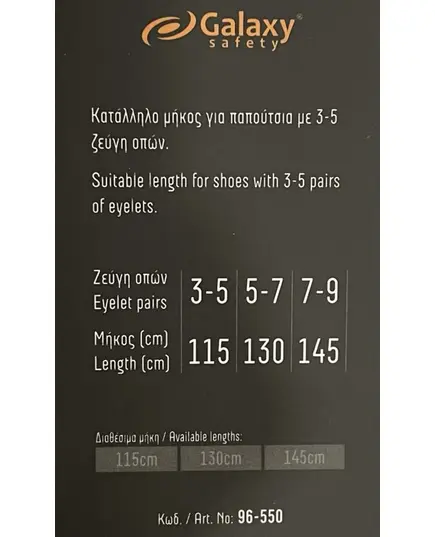 Κορδόνια παπουτσιών μαύρα GALAXY LACES 145cm 96-550