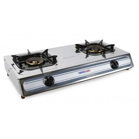 Κουζίνα υγραερίου χαμηλής πίεσης INOX με δύο εστίες μεγάλες και διακόπτες ηλεκτρονικής ανάφλεξης