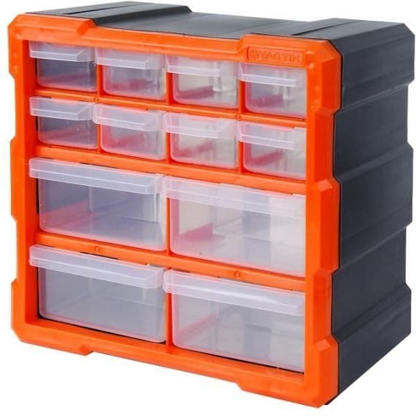 Κουτί αποθήκευσης πλαστικό με 12 συρτάρια διάφανα TACTIX 26X16X27 εκατοστά 320630