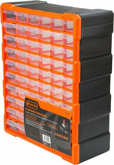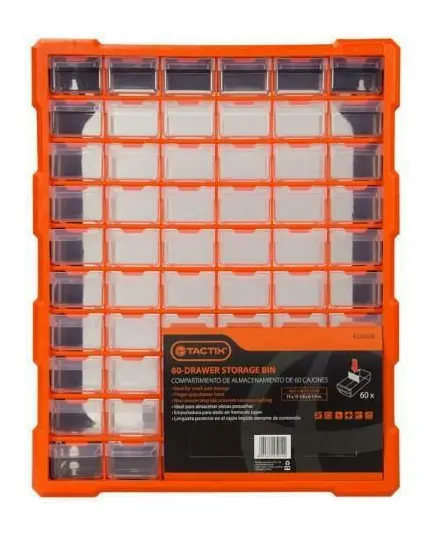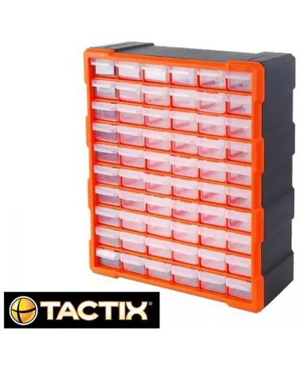 Κουτί αποθήκευσης πλαστικό με 60 μικρά συρτάρια διάφανα TACTIX 38.5X16X45.5 εκατοστά 320638