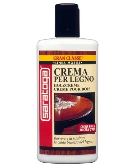 Η Saratoga ΚΡΕΜΑ ΞΥΛΟΥ είναι μια απαλή κρέμα πλούσια σε κερί μελισσών, ιδανική για τη αναγέννηση και την ανάδειξη της ζεστής ομορφιάς του φυσικού ξύλου των επίπλων και κάθε ξύλινης επιφάνειας. Τρέφει το ξύλο σε βάθος, καθαρίζει και είναι εύκολη στην χρήση.