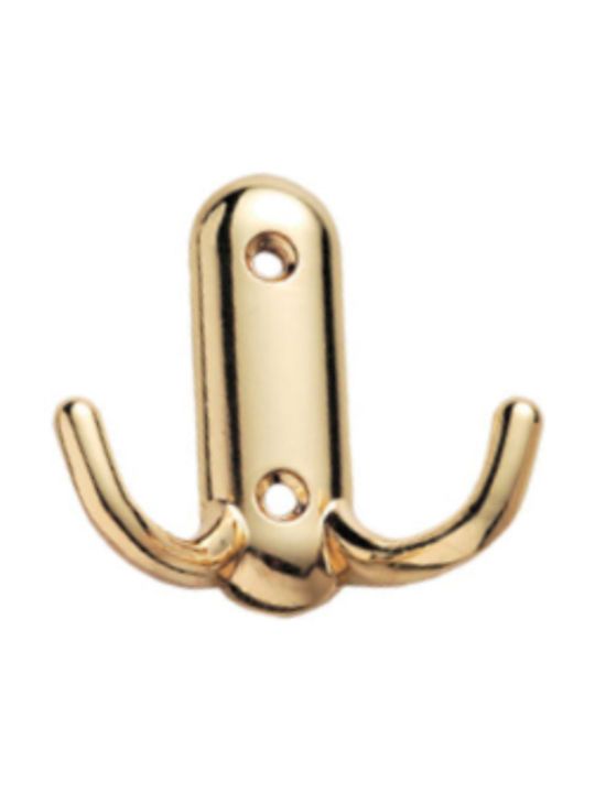 Κρεμάστρα Τοίχου Μεταλλική 2 Θέσεων Χρυσό γυαλιστερό 6.5x2.5cm