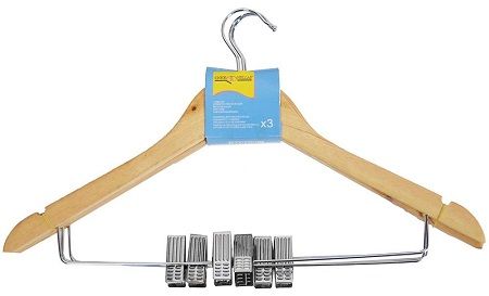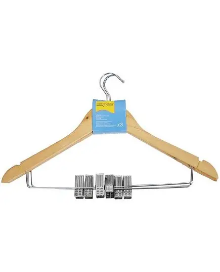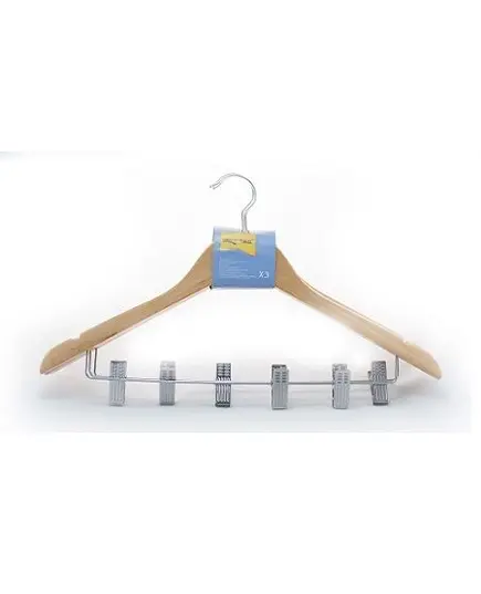 Σετ- 3τεμ Κρεμάστρα ρούχων ξύλινη με μεταλλικά κλιπ