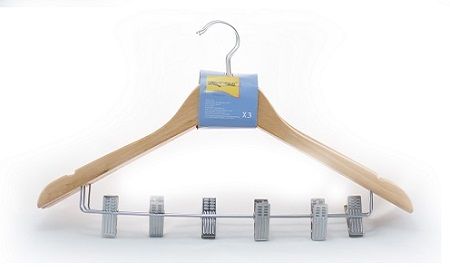 Κρεμάστρα ρούχων ξύλινη με μεταλλικά κλιπ