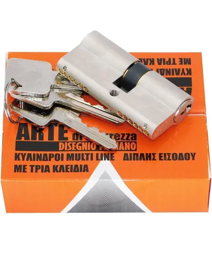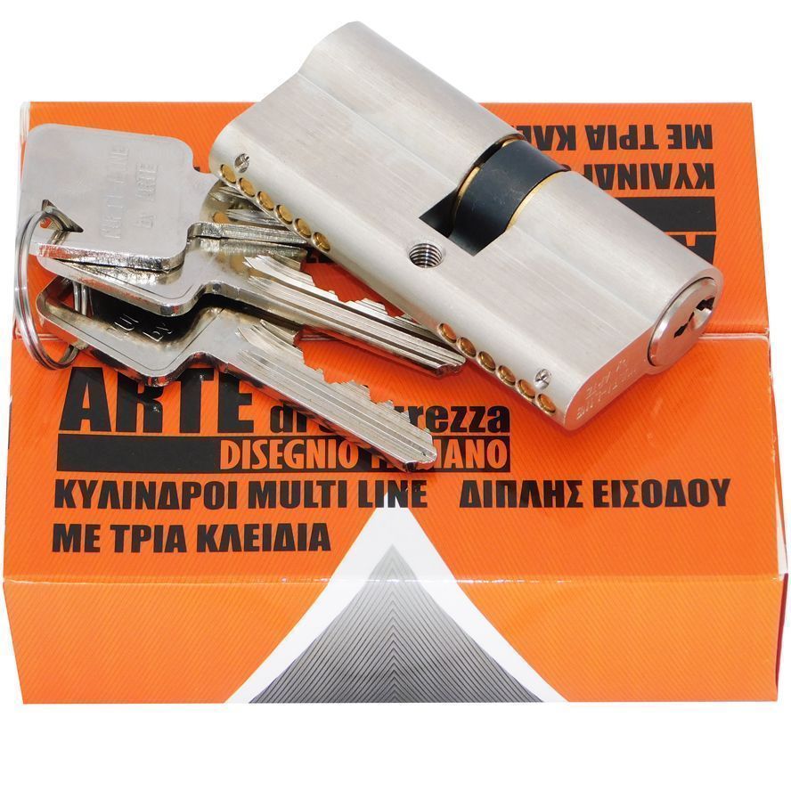 Κύλινδρος ARTE MULTI-LINE διπλής εισόδου ταυτόχρονα 2 κλειδιών (μέσα -έξω) νίκελ ματ με 3 κλειδιά 100mm (35-65)