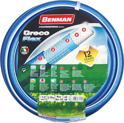 Λάστιχο ποτίσματος GrecoFlex Benman. Ανθεκτικό στην κακοκαιρία. Ανθεκτικό στις μεγάλες καταπονήσεις. Η20 κατάλληλο για τρόφιμα. Ελαφρύ και εύχρηστο. Δεν παραμορφώνεται. Οικολογικό.