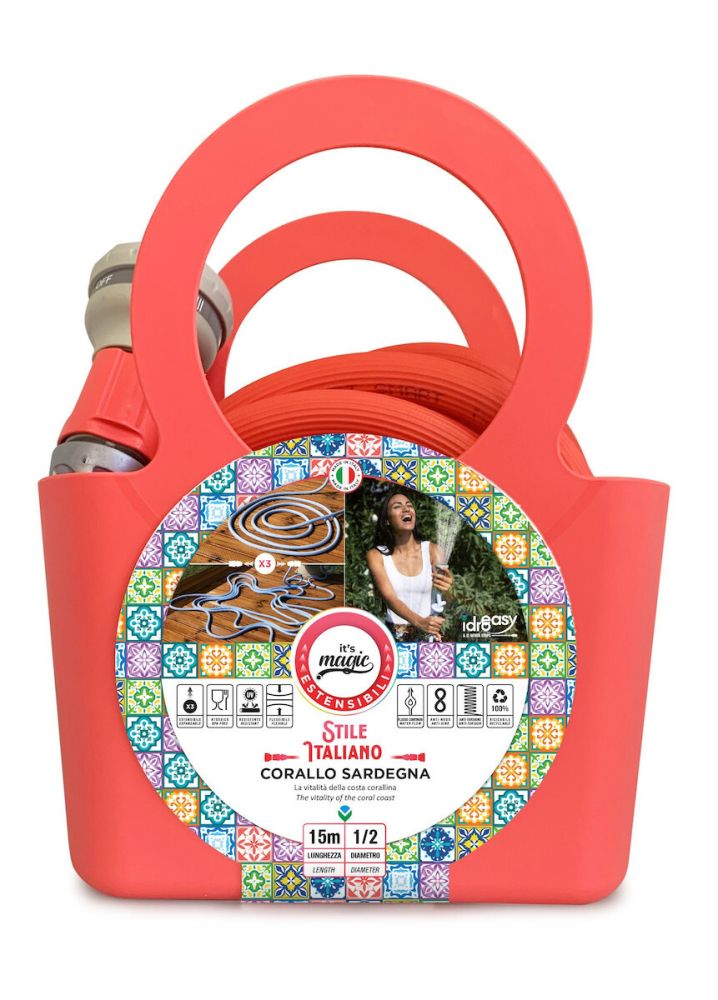 Λάστιχο νερού MAGIC ITALIAN STYLE επεκτεινόμενο 1/2 kit 5 εώς 15μετρα + τσάντα CORAL ROSE