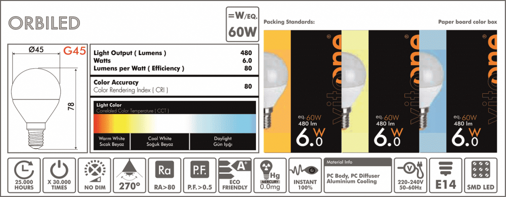 Led Σφαιρική Ε14 VitoΟne 6W 2700Κ (Κίτρινο χρώμα)