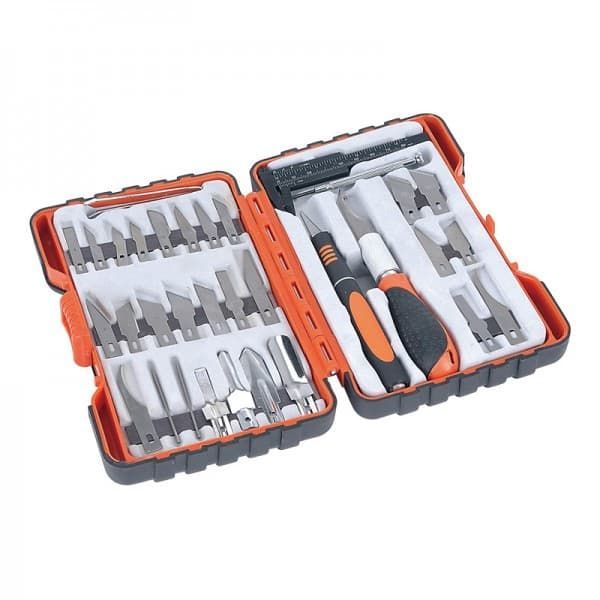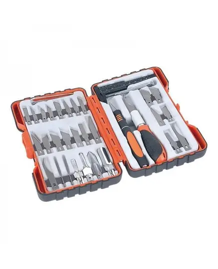 Λεπίδες ξυλογλυπτικής με αντιολισθητική λαβή σε πλαστική κασετίνα 36 τεμάχια TACTIX 263015
