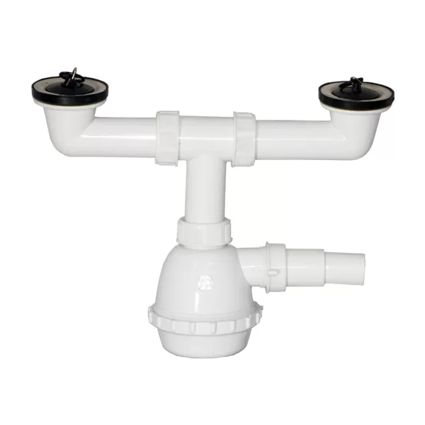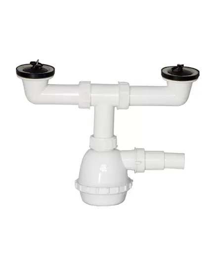 Λιποσυλλέκτης νεροχύτη κουζίνας διπλός πλαστικός Φ70 με βαλβίδα λευκός 1026-P