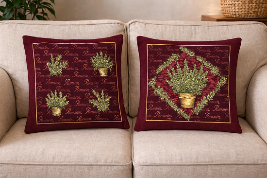 Φέρτε την αίσθηση της φύσης στον χώρο σας με αυτές τις κομψές μαξιλαροθήκες διπλής όψης, εμπνευσμένες από αρωματικά φυτά και μεσογειακή αισθητική. Τα σχέδια με γλάστρες και βότανα όπως δεντρολίβανο, θυμάρι και ελιά, συνδυάζονται με διακριτικές καλλιγραφικές λεπτομέρειες, δημιουργώντας ένα ζεστό και αυθεντικό αποτέλεσμα.