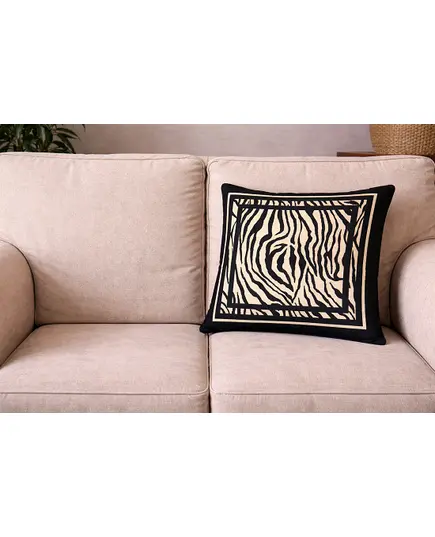 Δώστε ένταση και στυλ στον χώρο σας με αυτή τη μοντέρνα μαξιλαροθήκη σε εντυπωσιακό animal print σχέδιο. Ο συνδυασμός μαύρου και εκρού δημιουργεί ένα δυναμικό αποτέλεσμα που τραβάει τα βλέμματα, ενώ το μοτίβο εμπνευσμένο από ζέβρα προσθέτει χαρακτήρα και μοντέρνα αισθητική.