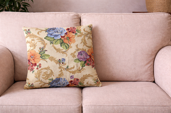 Αναδείξτε την κομψότητα του χώρου σας με αυτή τη διαχρονική διακοσμητική μαξιλαροθήκη σε κλασικό floral σχέδιο. Τα εντυπωσιακά λουλούδια σε αποχρώσεις μπλε, ροζ και κεραμιδί συνδυάζονται αρμονικά με τις διακοσμητικές λεπτομέρειες, δημιουργώντας ένα αποτέλεσμα εμπνευσμένο από την αισθητική του Damask.