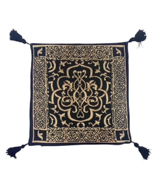 Το εντυπωσιακό μοτίβο σε αποχρώσεις μαύρο και χρυσού δημιουργεί ένα αίσθημα πολυτέλειας, ενώ οι διακριτικές φούντες στις τέσσερις γωνίες προσθέτουν μία boho πινελιά.