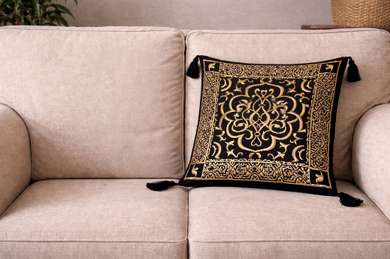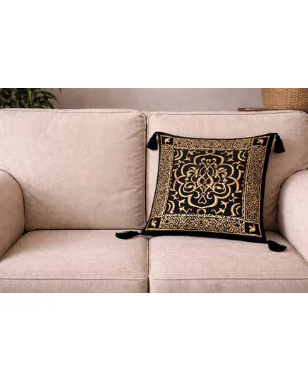 Μαξιλαροθήκη Διακοσμητική με Κρόσσια – Μαύρο με Χρυσό Μοτίβο