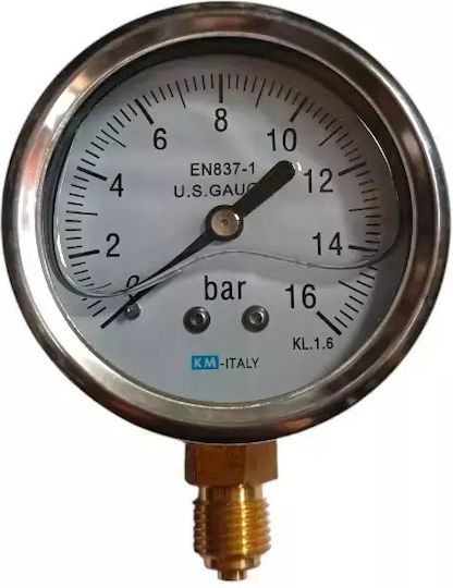 Μανόμετρο γλυκερίνης με σπείρωμα 1/4" Φ68 0-16Bar κάτω ουρά (σπείρωμα) inox