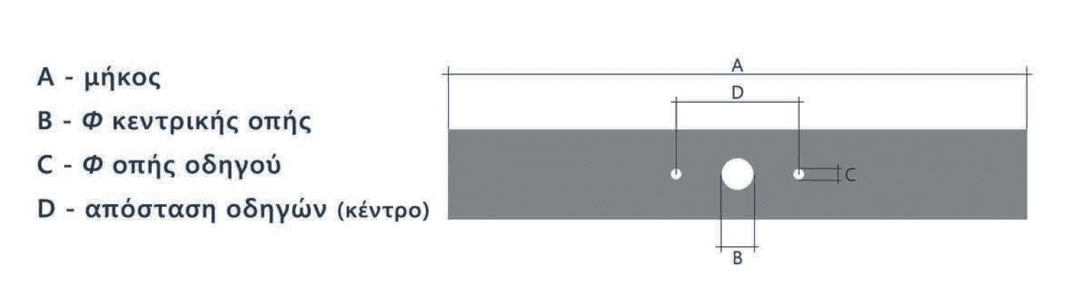 D: Απόσταση πλαινών τρυπών (οδηγών) κέντρο κέντρο 65 χιλιοστά
