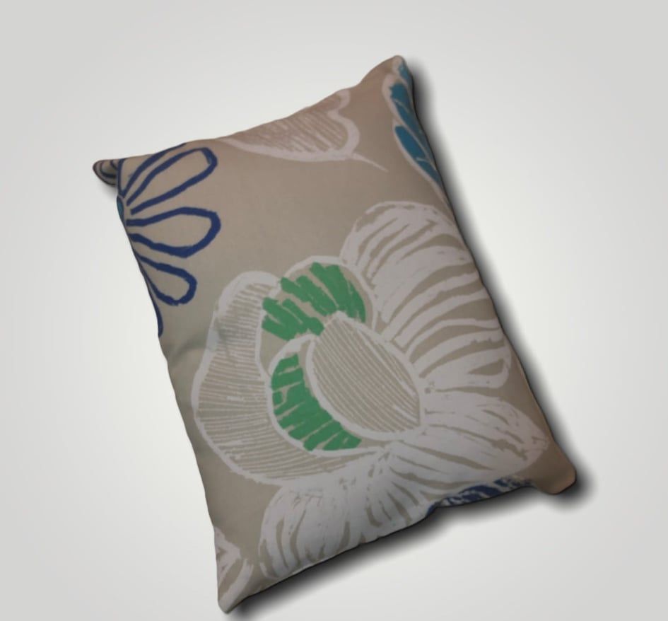 - περιγραφή:Μαξιλάρι διακοσμητικό βαμβάκι σε εκρού χρώμα με μπλε,πράσινα,λευκά σχέδια.