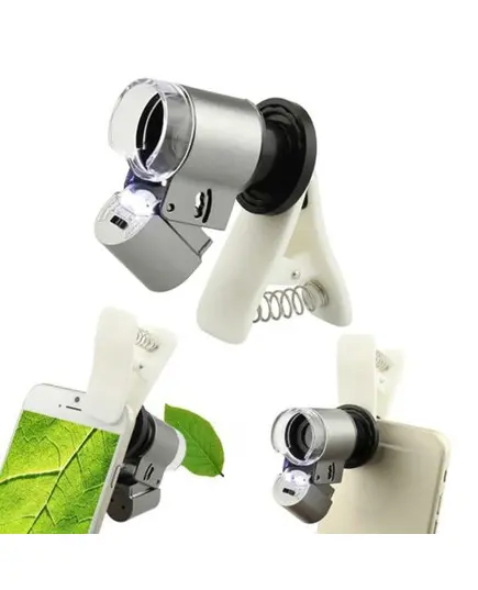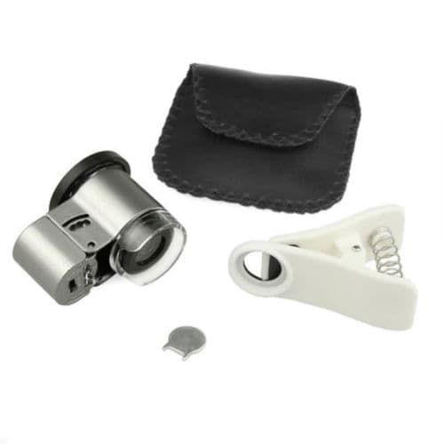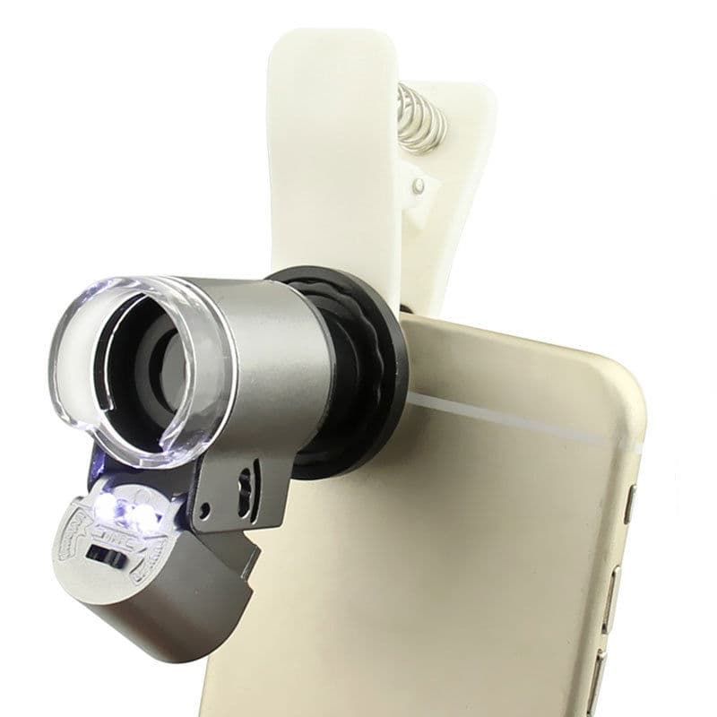 Ένα κλιπ με φακό - μικροσκόπιο με ζουμ 60x που προσαρμόζεται σε όλα τα κινητά. Διαθέτει 2 LED και φως UV για τον έλεγχο γνησιότητας χαρτονομισμάτων!