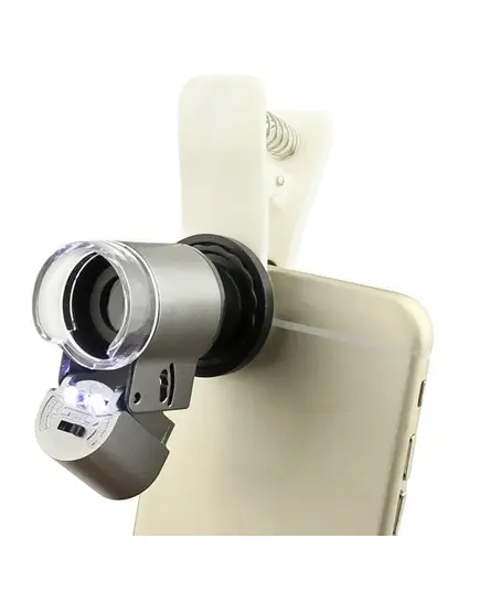 Φακός - μικροσκόπιο με κλιπ για το κινητό με 2 LED και UV 65Χ