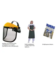 - Μάσκα θαμνοκοπτικού με ρυθμιζόμενη διάμετρο κεφαλής - μεταλλική σίτα -Ποδιά 110x75cm -Ωτοασπίδες