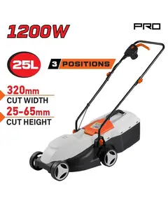 Ονομαστική Τάση 200-240 V Ισχύς 1000 W Ταχύτητα χωρίς φορτίο 3.400 min Πλάτος Κοπής 320 mm Ύψος κοπής 20,40,60 mm Χωρητικότητα συλλογής 25 L Βάρος 6,2 kg Ρόδα εμπρός 13,8 cm Ρόδα πίσω 13,8 cm
