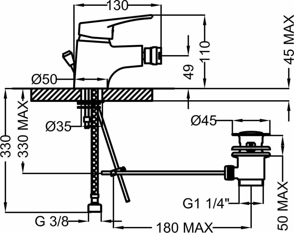 Τοποθετείται σε οπή απευθείας πάνω στο μπιντέ.