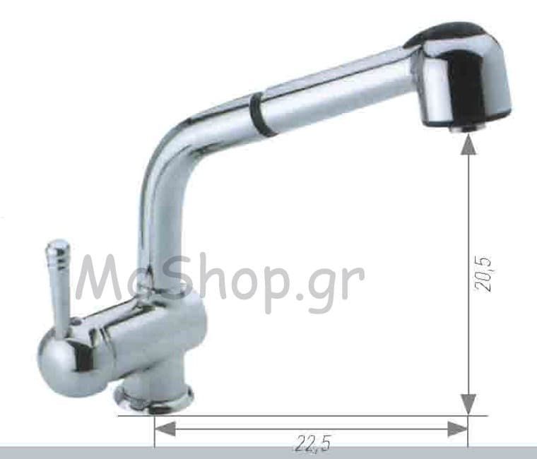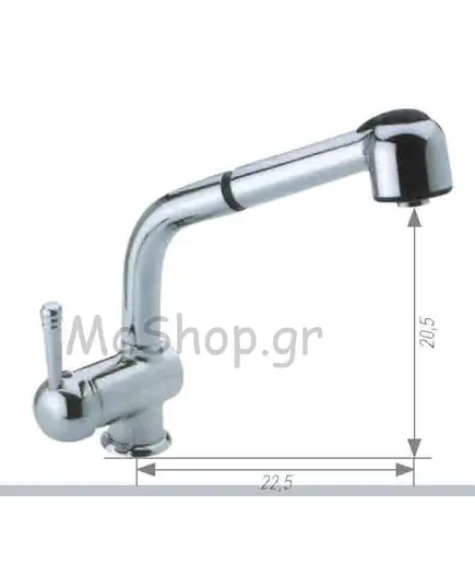 Μπαταρία Νεροχύτη Κουζίνας SILVIA Με Ψηλό Ρουξούνι και Ντουζάκι (βουρτσάκι) (5 χρόνια γραπτή εγγύηση) με Μηχανισμό Φ40