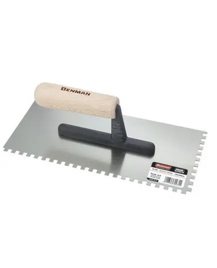 Μυστρί Πλακάδων Inox 130x280mm Με Τετράγωνο Δόντι 8Χ8mm & Ξύλινη Λαβή BENMAN 70936