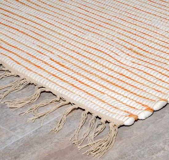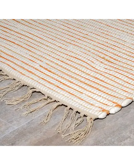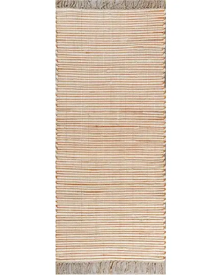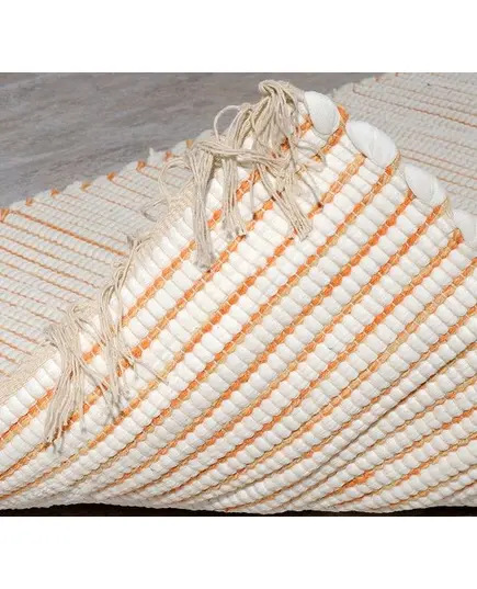 Χαλάκι Χειροποίητο 4 εποχών 67x150 από τη σειρά Natura της εταιρείας Tzikas Carpets. Φέρει ριγέ σχέδιο σε εκρού αποχρώσεις με πράσινες λεπτομέρειες. Πρόκειται για ινδικό χαλί με υψηλή ποιότητα κατασκευής που προσομοιάζει στα παραδοσιακά κιλίμια. H boho αισθητική του το καθιστά ευκολοσυνδύαστο και μπορεί να ταιριάξει με όλα τα στυλ διακόσμησης. Είναι κατασκευασμένο από 100% οργανικό βαμβάκι και έχει περίτεχνα κρόσσια σε μπεζ χρώμα. Μπορεί να τοποθετηθεί σε όλους τους χώρους του σπιτιού, αναβαθμίζοντας την αισθητική τους. Το βάρος του χαλιού είναι 1.600gsm. Καθαρίζεται εύκολα με ηλεκτρική σκούπα χωρίς δοντάκια. Το χαλί είναι πλενόμενο και μπορεί να πλυθεί είτε στο χέρι είτε στο πλυντήριο στους 30οC και χωρίς στύψιμο. Τα χαλιά της εταιρείας Tzikas Carpets είναι υποαλλεργικά και φιλικά προς την υγεία και το περιβάλλον.