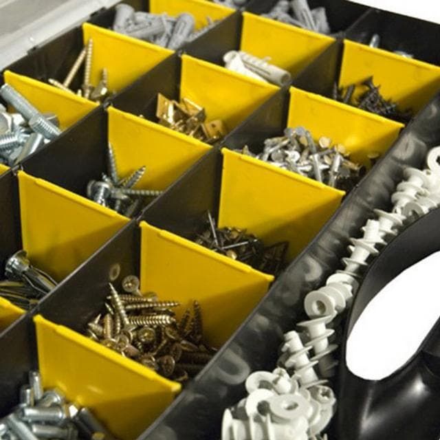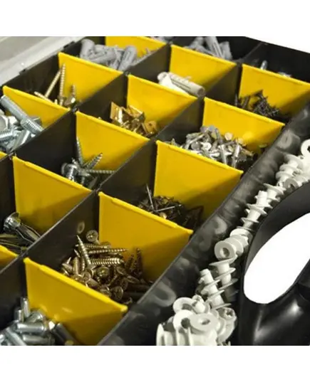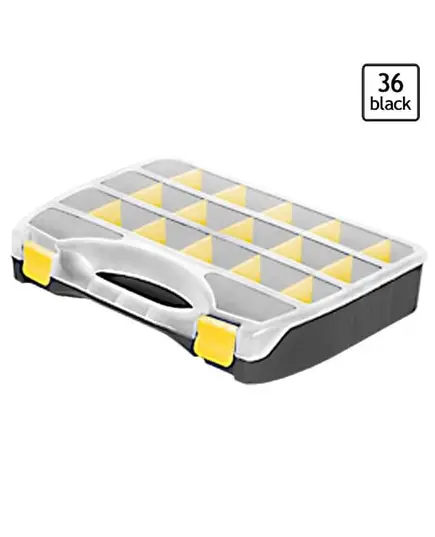 Θήκη υλικών πλαστική με επιθυμητές - μεταβλητές θέσεις μαύρη με ημιδιάφανο καπάκι organizer Domino 36 (364χ268χ66mm)