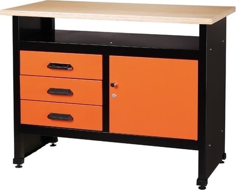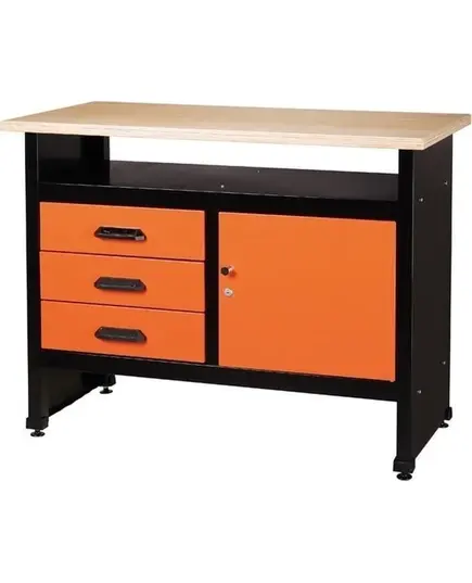Πάγκος εργασίας μεταλλικός με ξύλινη επιφάνεια με 3 συρτάρια και 1 ντουλάπα TACTIX 326121