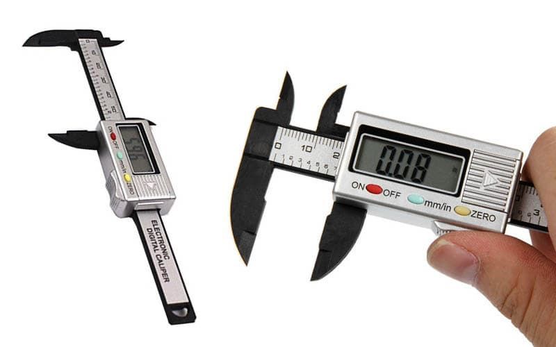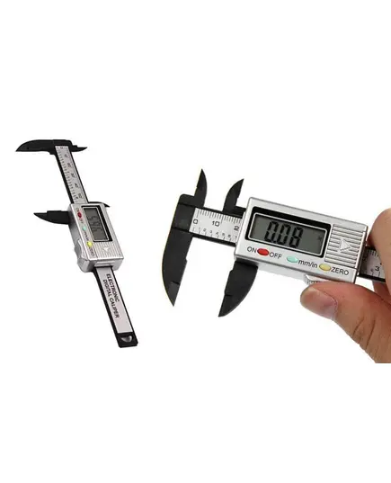 Ηλεκτρονικό ψηφιακό παχύμετρο με οθόνη ενδείξεων, κατάλληλο για ερασιτεχνική ή επαγγελματική χρήση.