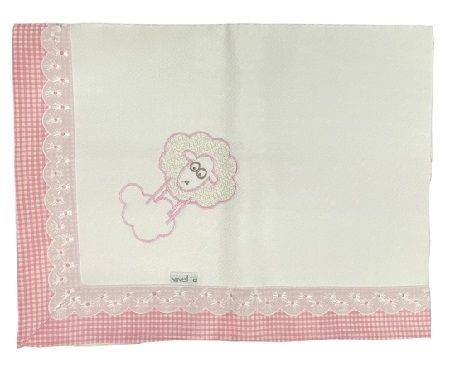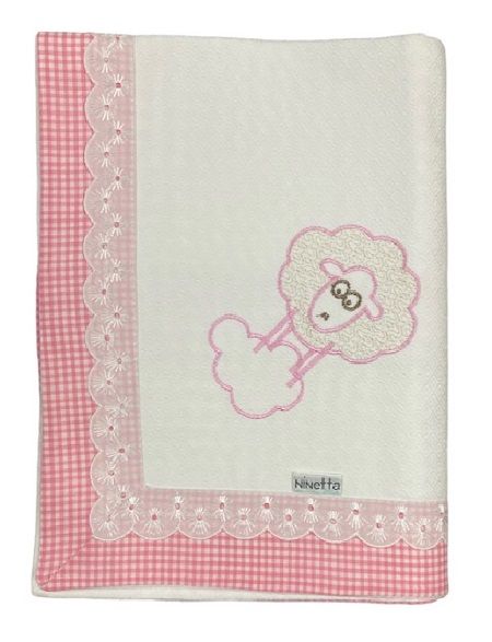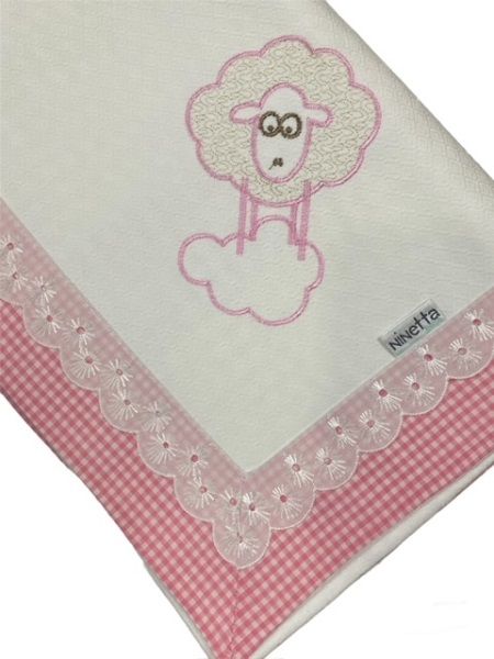 Πάνα πικέ αγκαλιάς λευκή καρώ φάσα και δαντέλα,