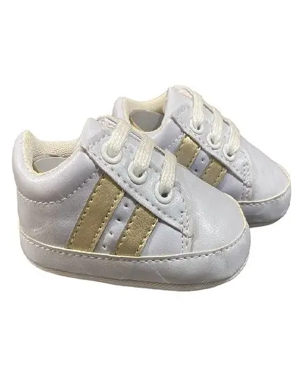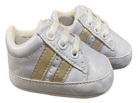 Παπουτσάκια αγκαλιάς άσπρα με χρυσές γραμμές Νο 18-20 (6-12 μηνών)