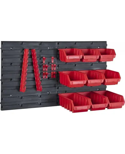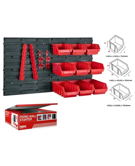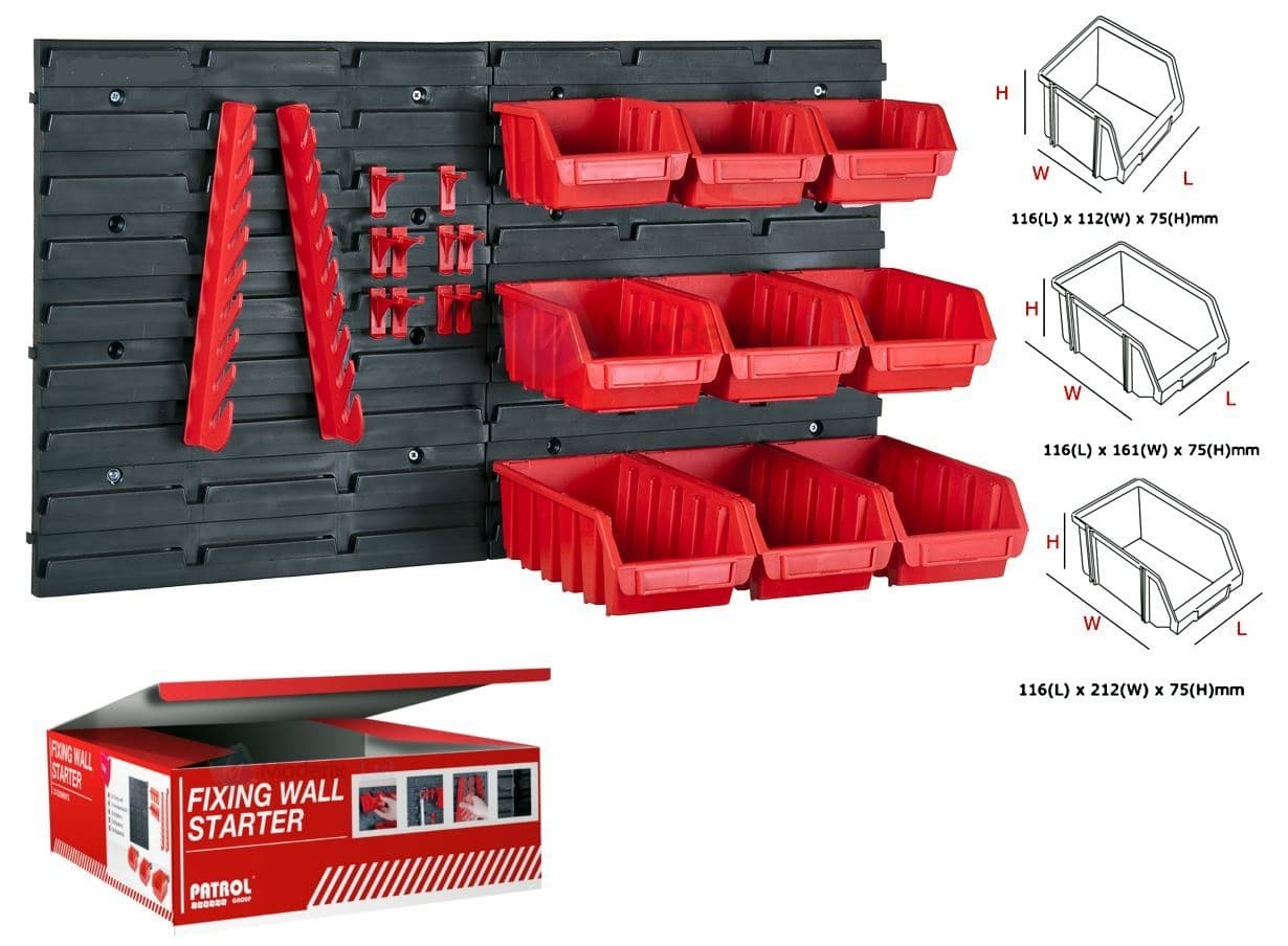 Αυλακωτή πλαστική πλάτη σύστημα αποθήκευσης με 2 ταμπλό + γάντζους + σκαφάκια, 70 x 40 x 20 εκατοστών Patrol Fixing Wall Starter 23 τεμάχια 1241