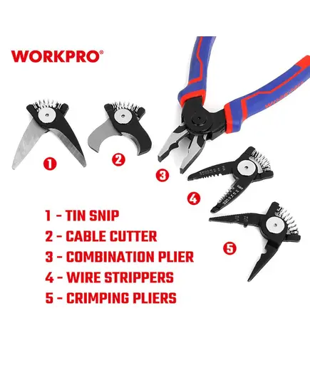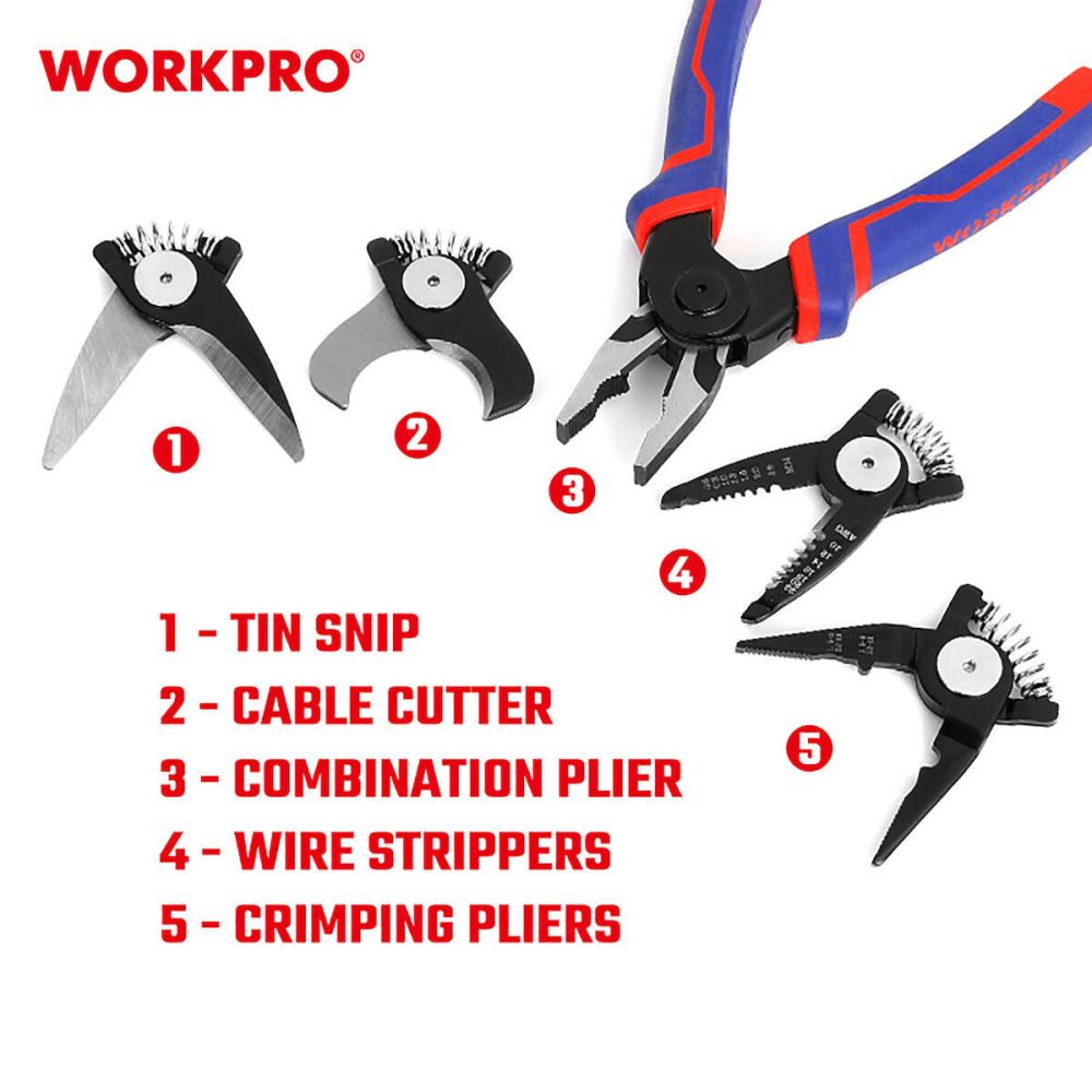 Πένσα Πολυλειτουργική 5 Κεφαλών σε Κασετίνα 200mm Workpro WP231144