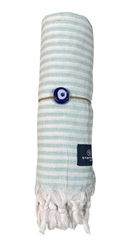 Πετσέτα θαλάσσης Pestemal ριγέ με κρόσια 100x180. STAMION 92009 Μέντα