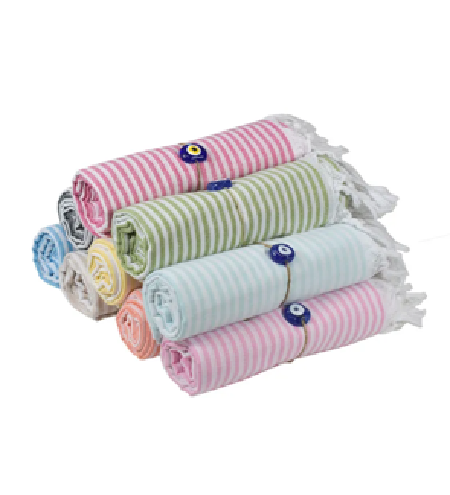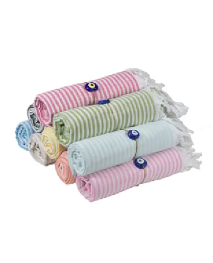 Πετσέτα θαλάσσης Pestemal σε ριγέ σχέδιο και τελείωμα με κρόσια.