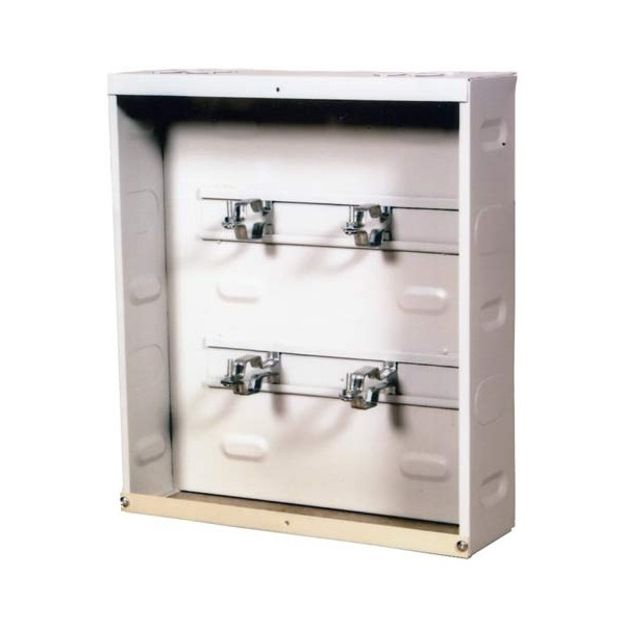 Μεταλλικός πίνακας υδροληψίας κατασκευασμένος από γαλβανιζέ λαμαρίνα και καπάκι λευκής βαφής. Τοποθετείται για την στήριξη συλλεκτών στον τοίχο, είτε σε ύδρευση είτε σε θέρμανση, και καλύπτεται απο το καπάκι λευκού χρώματος.