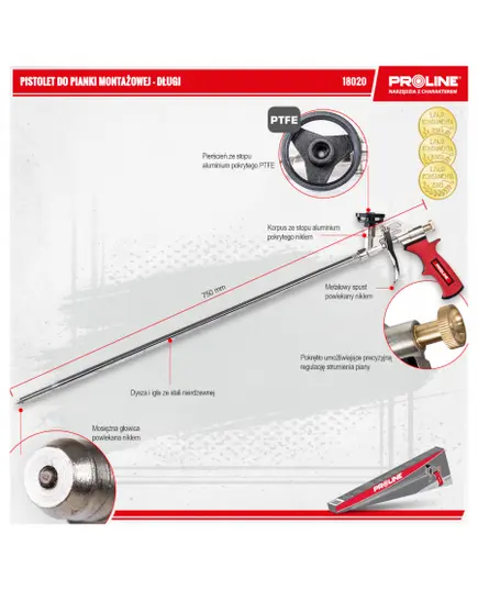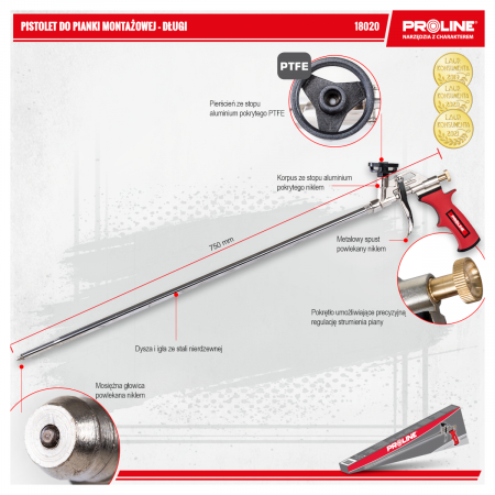 Πιστόλι για αφρό πολυουρεθάνης PROLINE 18020 με μακρύ σωληνάκι 73cm