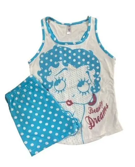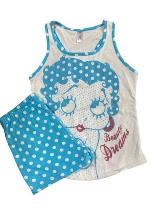 Πιτζάμα Dreams πουά σε λευκό-σιέλ χρώμα "Betty Boop"
