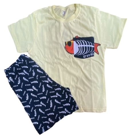 Πιτζάμα Dreams σε κίτρινο-μπλε χρώμα "Fish"