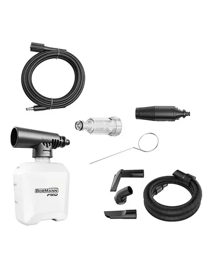 Το πλυστικό μηχάνημα της Bormann λειτουργεί με ρεύμα και πρέπει να συνδεθεί στην παροχή νερού. Η μέγιστη πίεση του πλυστικού είναι 130 bar και η μέγιστη ροή νερού 480 lt/h, και μπορεί να ανταποκριθεί πλήρως στις περισσότερες εργασίες καθαρισμού ενός σπιτιού (π.χ. πλύσιμο αυτοκινήτου, αυλής, χαλιών, αφαίρεση μούχλας).
