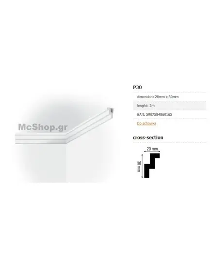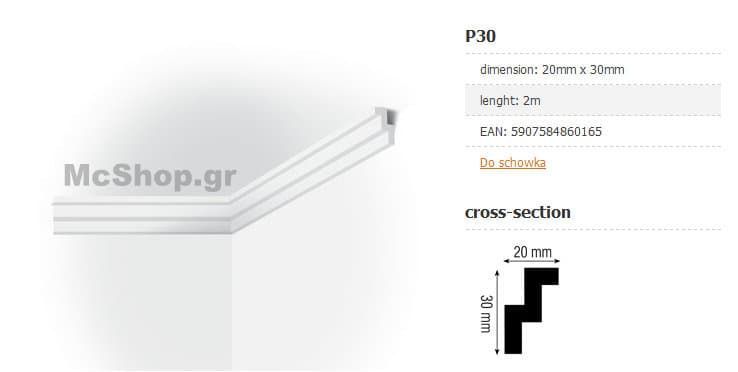 Πολυστερίνη κορνίζα απομίμηση γύψινου μήκους 2 μετρών 20x30 χιλιοστών P30