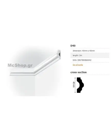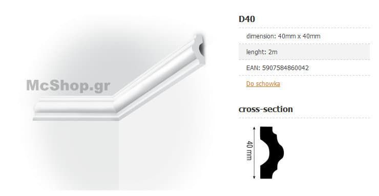 Πολυστερίνη κορνίζα απομίμηση γύψινου μήκους 2 μετρών 40 χιλιοστών D40